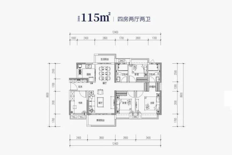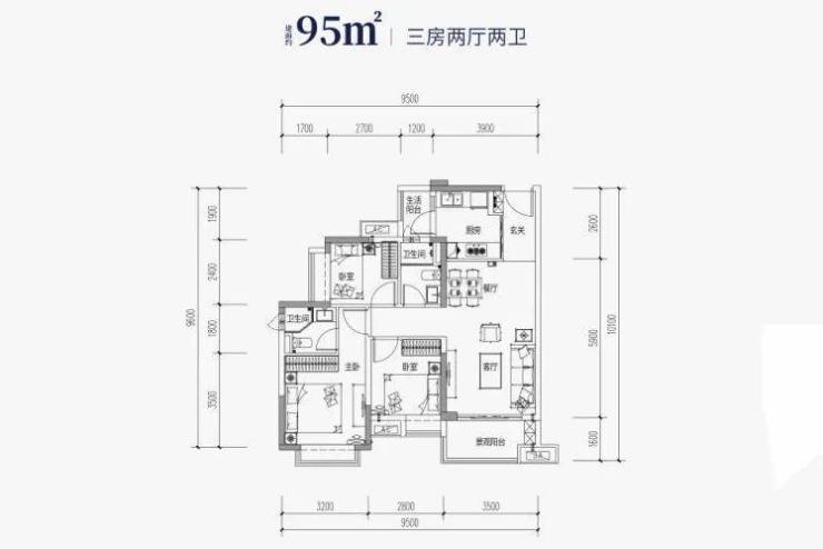 规划户型为约95-143㎡南向江景三四房,均为双阳台结构,通透无遮挡,视野开阔,通风采光俱佳。