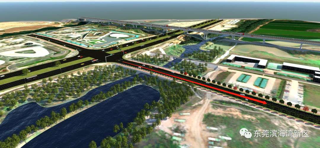 沙涌西侧规划次干路现状俯瞰道路周边区域,一边是建设中的OPPO智能制造中心厂房,另一边正在推进沙涌综合整治项目。未来,沙涌西侧路将成为出入OPPO智能制造中心的重要通道,人们到沙涌两岸散步休闲,体验滨水平台和亲水栈道也将更加便利。 迎宾路东延线 长度:656米车道:双向4车道设计速度:30公里/小时估算总投资:1.43亿元