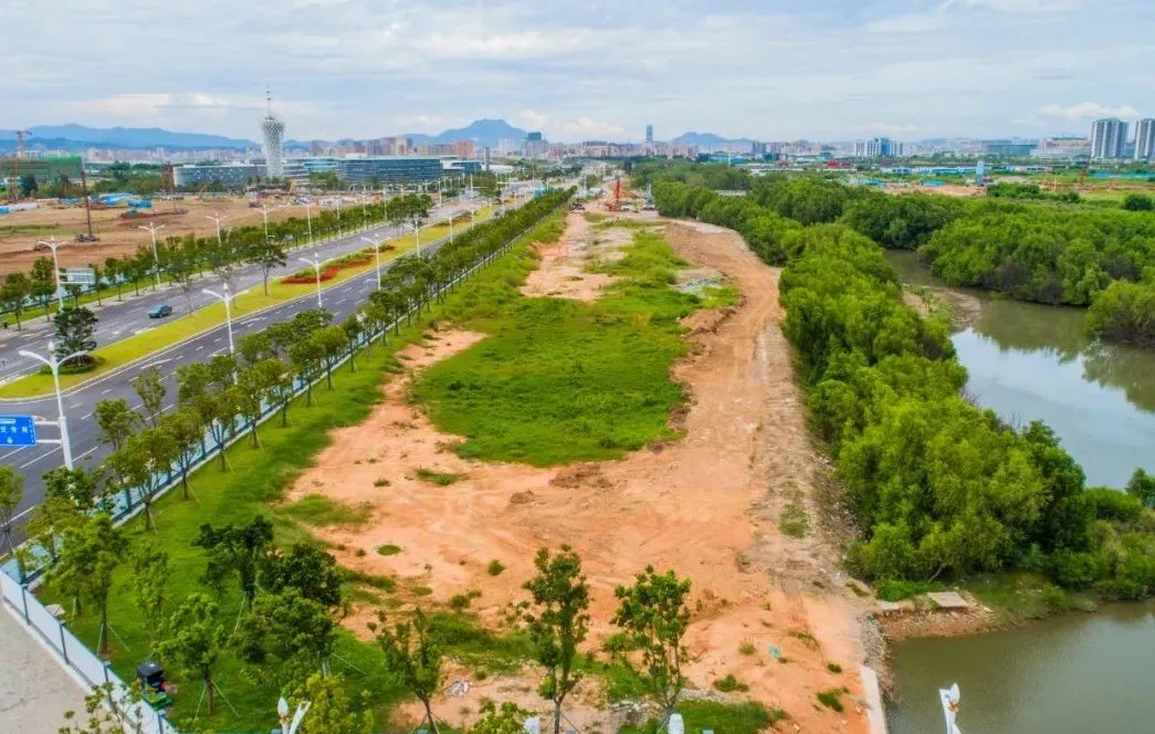 从苗涌生态长廊往兴海路方向望去,文体公园和沙涌综合整治项目也在如火如荼地推进,城市公共配套设施将更加完善。未来,文体公园将连接苗涌生态长廊和沙涌生态长廊,绘就一幅人城与自然共生的生态画卷。