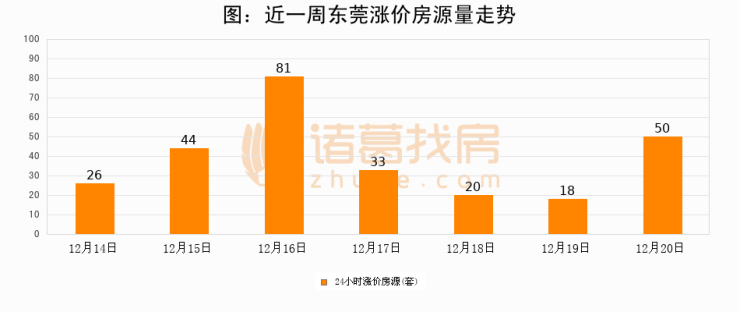 根据诸葛找房数据显示,东莞24小时涨价房源量为50套,较12月19日增加32套,环比上涨177.8%。与此同时,涨价房源占比小幅扩大,业主信心有所提升。