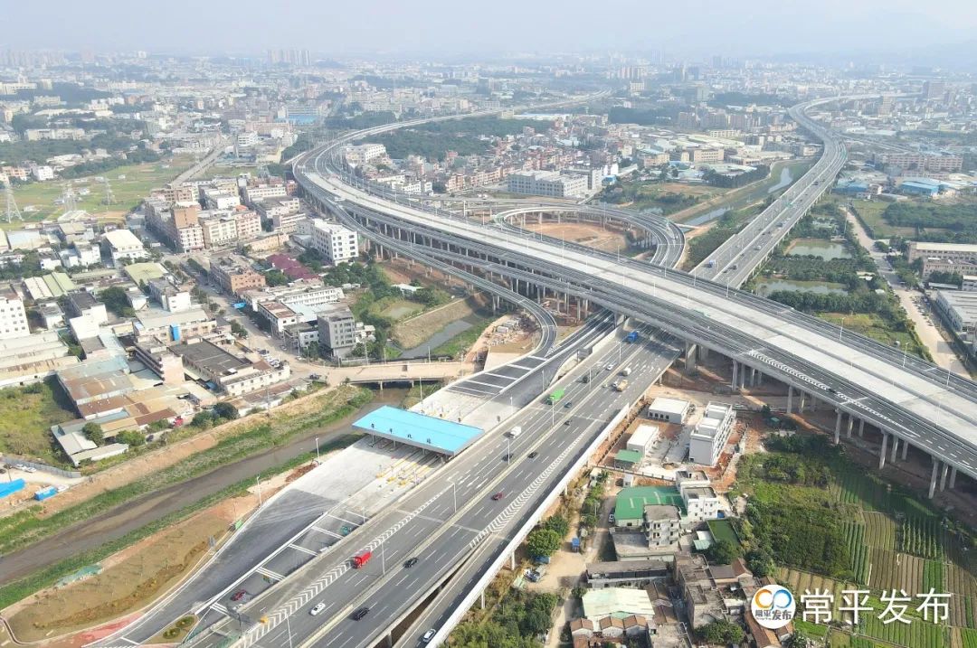 ▲莞番高速在常平北枢纽互通接驳从莞高速(来源:常平发布)