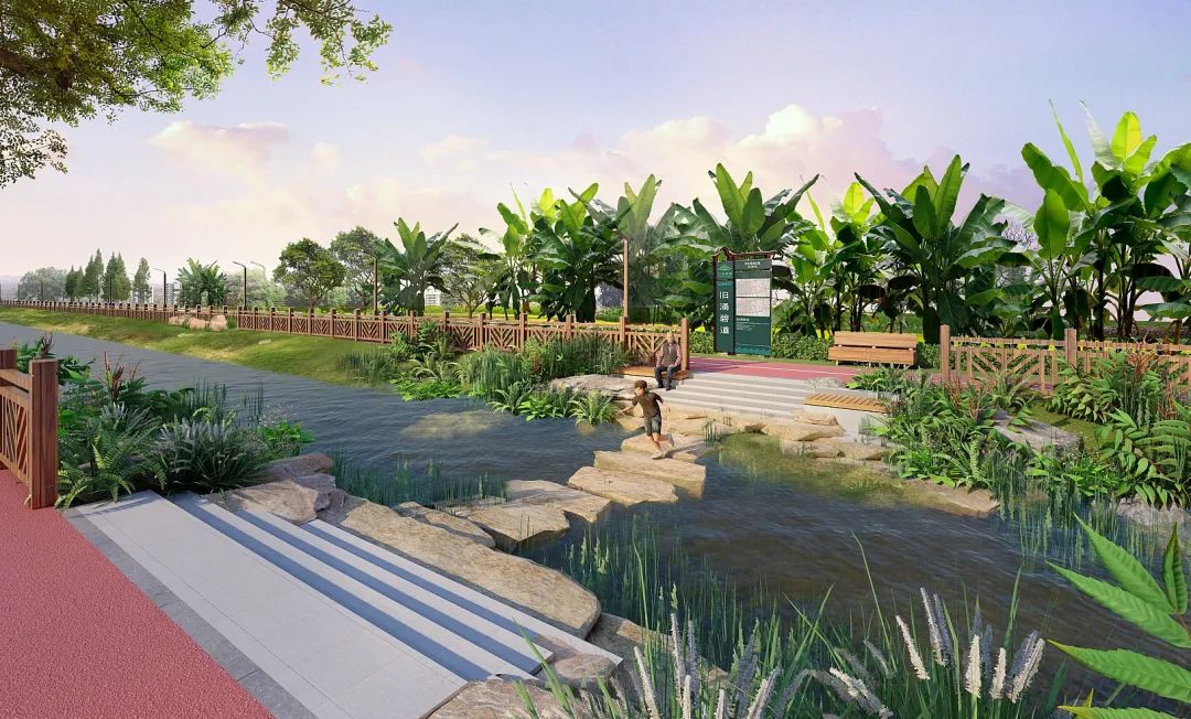 新涌项目起点位于溪头社区坤利花园北侧河道,终点位于溪头社区与东引运河交汇处,碧道总长约1347米;项目主要工程为建设3米宽人行步道与自行车道、绿化带、行道树、过河汀步、跨河桥梁、亲水平台等,局部设置休闲座凳、指示牌等设施。