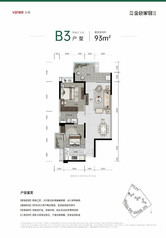 万科时富·金色家园为富联合万科地产打造的城区品质大盘,小区内设约47000㎡生活园林,超100米奢阔楼间距,可户户观景,户型面积为建面约75-150㎡二至四房,主力户型为建面约75㎡二房;建面约95㎡三房;建面约125㎡四房。