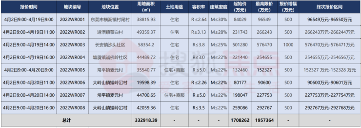 不过,接下来的4月,东莞将有8宗商住用地集中入市,涉及道滘、长安、塘厦、大岭山、常平、横沥6个镇街,出让总面积达33.29万㎡,地块起拍总价达170.83亿元,将于4月19-20日进行集中出让。(详情:重磅!限价松绑!东莞首批集中供地地块正式挂牌上线!)