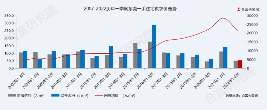 从楼市的总体供求上来看,一季度东莞新房供应量处于历史第二低位,网签量则处于历史较低位。