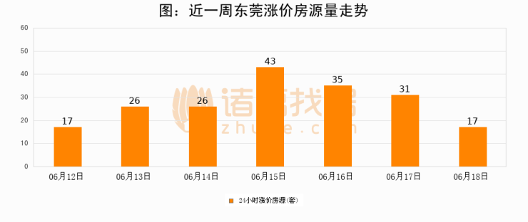 根据诸葛找房数据显示,东莞24小时涨价房源量为17套,较06月17日减少14套,环比下降45.2%。与此同时,涨价房源占比小幅回落,对于购房者来说是一个入市窗口期,购房者可抓住时机入市。