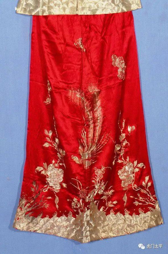 清刺绣晤银凤凰女袄,和清代刺绣蟠银凤凰裙,苏州博物馆藏,三级文物。这一套是袁世凯第十三个女儿十三岁出嫁时穿的嫁衣,用银线打造,精美绝伦。