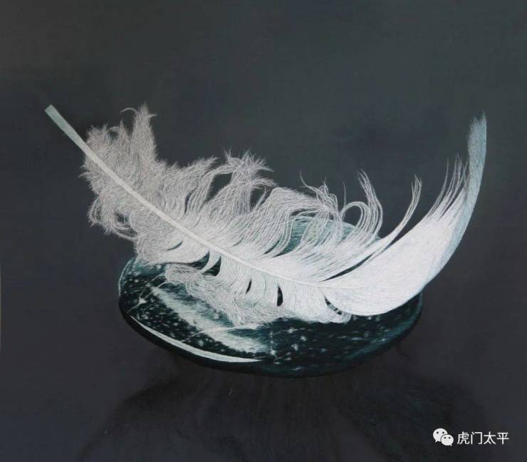 苏绣国家级非遗传承人姚惠芬作品《精卫填海之羽毛》。是为2017年“第57届威尼斯双年展中国馆”创作的苏绣系列作品之一。