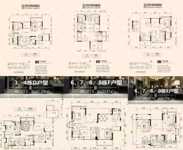 户型:约96㎡三房两厅两卫、约103㎡三房两厅两卫