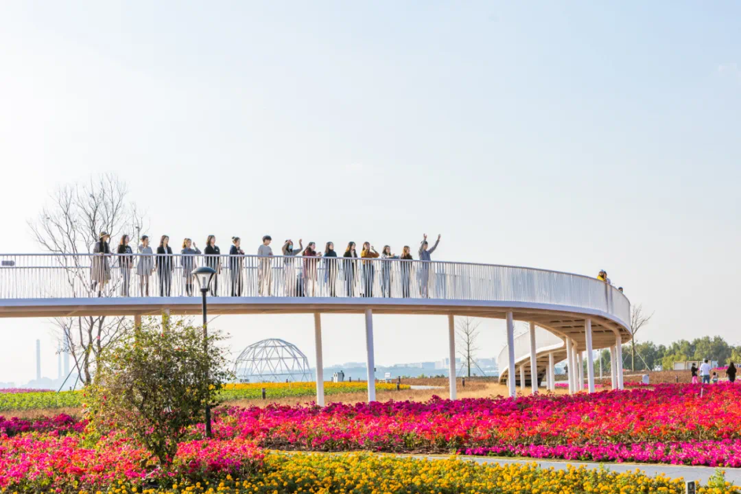 徜徉在花海间,站在空中廊桥俯瞰各色鲜花烂漫,这场如诗如画的先进视觉盛宴,你千万不能错过。