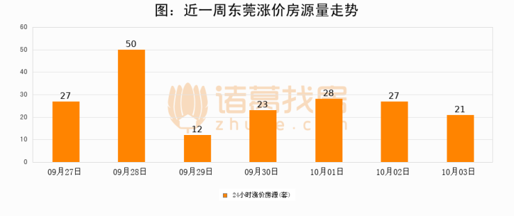 根据诸葛找房数据显示,东莞24小时涨价房源量为21套,较10月02日减少6套,环比下降22.2%。与此同时,涨价房源占比小幅回落,对于购房者来说是一个入市窗口期,购房者可抓住时机入市。