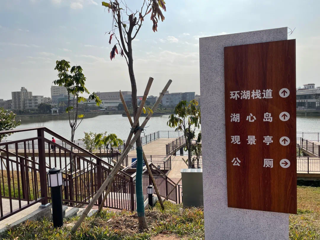 往前走到湖边,周边村舍错落有致,湖水与蓝天白云相映成趣,微风拂过,吹皱一池倒影。优美的环境吸引了不少镇内以及周边镇街的群众前来“打卡”、游玩、散步。