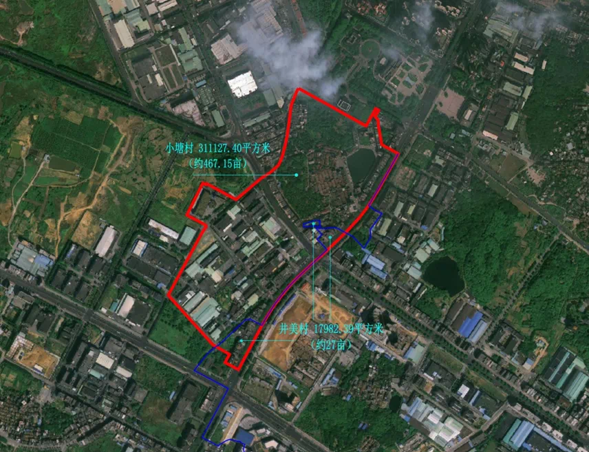 该项目位于东莞市东坑镇初坑小塘和井美村(北至东坑政府、南至科技路、西至迎宾路、东至东坑大道),拟更新单元范围约329109.79平方米(约494.15亩),其中属于初坑小塘用地约311127.40平方米(约467.15亩),属于井美村用地约17982.39平方米(约27亩)。实际用地面积、界线均以政府相关土地管理部门批复的文件为准。