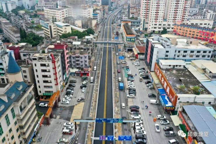 据介绍,塘厦大道立交桥于今年3月起实行分时段半封闭施工,在现状道路中间建设双向两车道高架桥,由于该路段车流量较大及近期天气原因 ,开放通车时间比原来预计稍晚。 立交桥建成后,可分流塘厦大道中车流,南来北往的直行车辆经过迎宾大道跨铁路桥路口时,将不需要等红绿灯,可直接从高架桥上通过; 需要从塘厦大道转入迎宾大道跨铁路桥的车辆,可走桥下辅道,有效缓解交通压力。