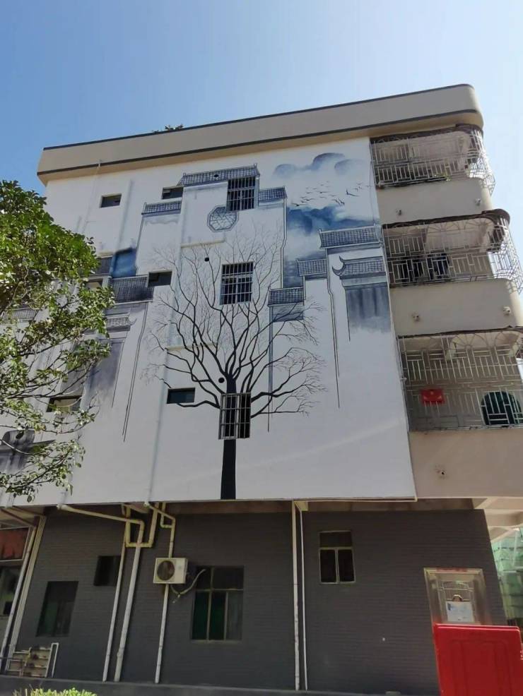 此外,袁屋围村对村内几条主干道,包括建安路、中兴路、永兴路、永安路路面进行沥青铺设及划定停车线,统一形象招牌,增加系统标识指示牌12处,并绘制党建文化彩绘墙。其中统一改造形象招牌3164平方米,自建房统一形象169栋。