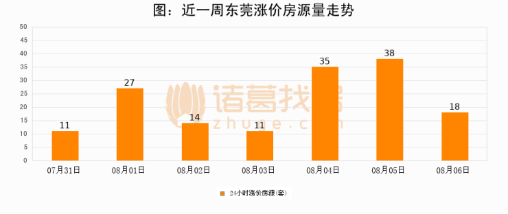 根据诸葛找房数据显示,东莞24小时涨价房源量为18套,较08月05日减少20套,环比下降52.6%。与此同时,涨价房源占比小幅回落,对于购房者来说是一个入市窗口期,购房者可抓住时机入市。