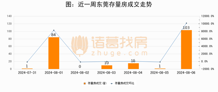 从存量房来看,2024年08月06日东莞存量房单日成交103套,比昨日增加102套,环比上涨10200%。从近一周存量房成交来看,东莞存量房日均成交套数为30套,08月06日单日成交103套,高于近一周平均水平243.3%。