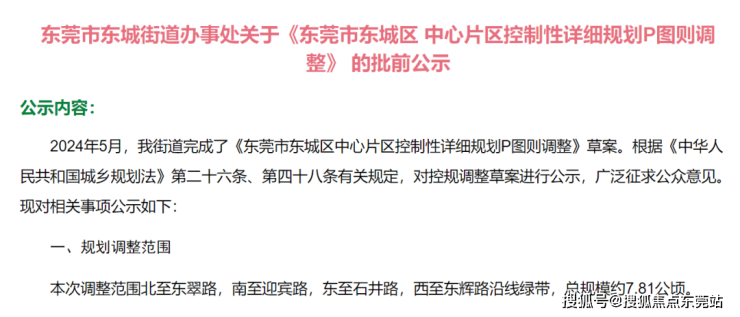近日,东莞市自然资源局发布了一则控规调整的批前公告——