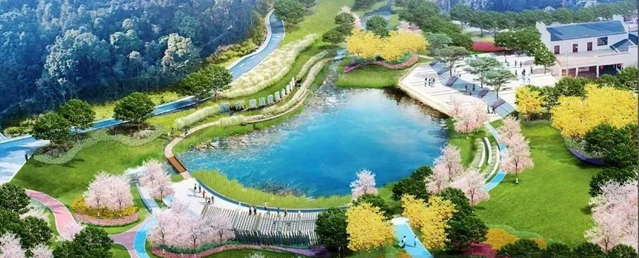 在九洞森林公园入口坡道处,原本山边的杂草已经清除,种上各种植被。走上勒竹排水库碧道,沿路增加了护栏、石凳、亭子等设施。在逸心湾,原有的水沟处放置了大量景石,种植了观赏植物,生态旱溪景象油然而生;戒指雕塑、生态石滩、特色廊架等景观设施为游客提供了休闲打卡好地方。