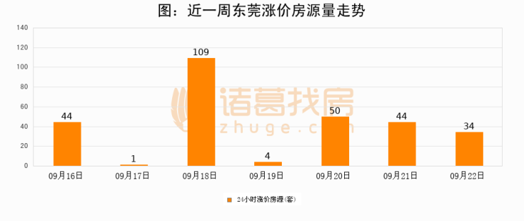 根据诸葛找房数据显示,东莞24小时涨价房源量为34套,较09月21日减少10套,环比下降22.7%。与此同时,涨价房源占比小幅回落,对于购房者来说是一个入市窗口期,购房者可抓住时机入市。
