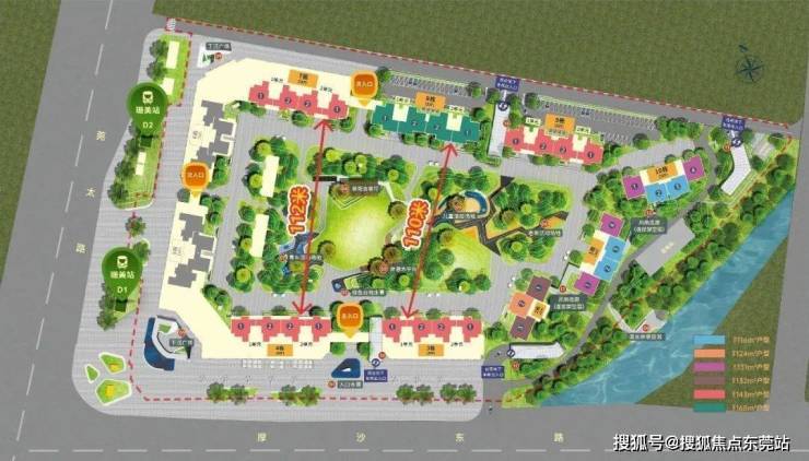 项目最大楼间距达到了112米,这样的楼间距将每一栋住宅的景观视野最大化,高楼层还可俯瞰厚街“黄金双轴”景观。
