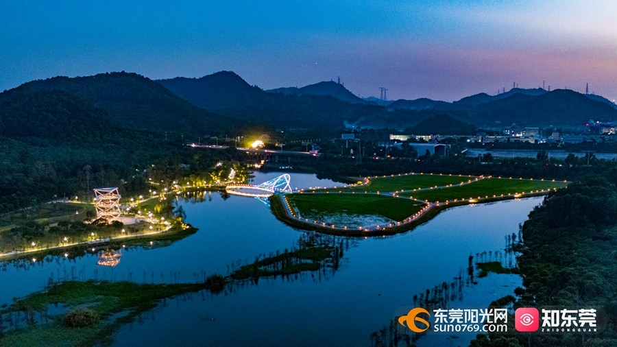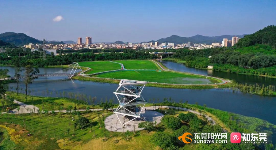 从城市高空俯瞰,黄江镇梅塘水(又称黄江河)水系串联起黄江多个工业区、城市公园和交通枢纽,将山体连绵的黄江自然地理风貌,分割成多片区、多走廊的“森林城市”格局,河道两岸生态水陂、多功能慢行绿道等日趋完善。