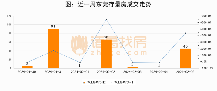 从存量房来看,2024年02月05日东莞存量房单日成交45套,比昨日增加44套,环比上涨4400%。从近一周存量房成交来看,东莞存量房日均成交套数为30套,02月05日单日成交45套,高于近一周平均水平50%。