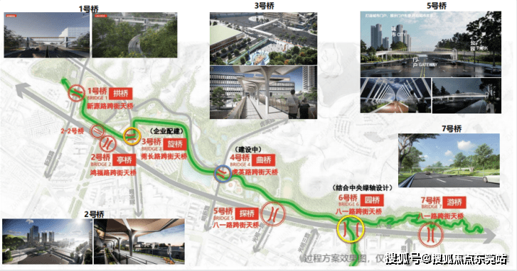 譬如瑧山境周边的三座桥梁(1、2-1、5号桥),1号桥位于体育公园连接妇女儿童中心一侧,2-1号桥位于瑧山境连接中海莞府一侧,5号桥可直接连接皇马郦宫。经过优化后,居民出行将不用再苦苦等待红绿灯,安步慢行,通达周边。