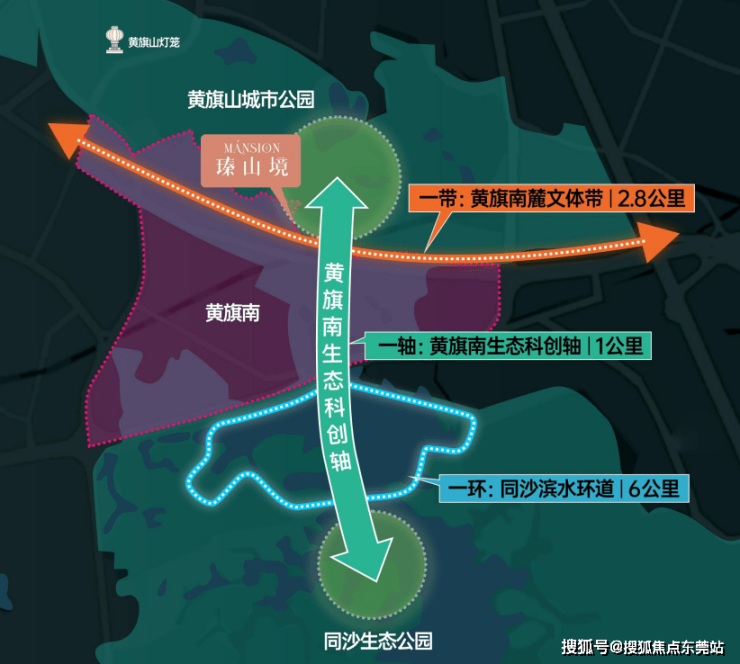 如果将黄旗南比喻为一个人的身体,那么贯穿片区的“一带一轴”,便是支撑起整体发展的骨架。