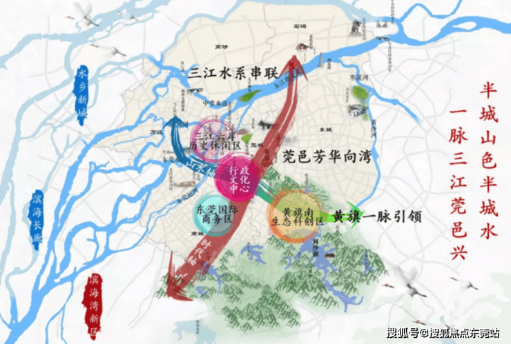 2019年,东莞市政府提出中心城区“一心两轴三片区”的整体规划,其中“两轴”即为东西向的鸿福路山水文化轴及南北向的东莞大道时代发展轴。