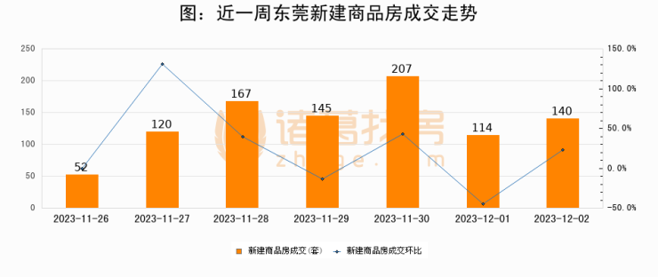 【东莞成交日报】12月02日新房成交140套;涨价房源13套
