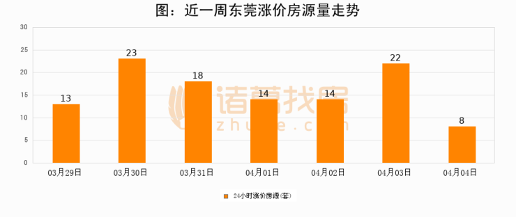 根据诸葛找房数据显示,东莞24小时涨价房源量为8套,较04月03日减少14套,环比下降63.6%。与此同时,涨价房源占比小幅回落,对于购房者来说是一个入市窗口期,购房者可抓住时机入市。