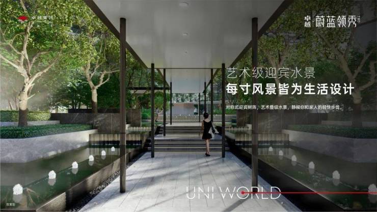 走进社区,迎面是艺术级迎宾水景,让社区有了度假的放松感,步履之间,尽显礼序;