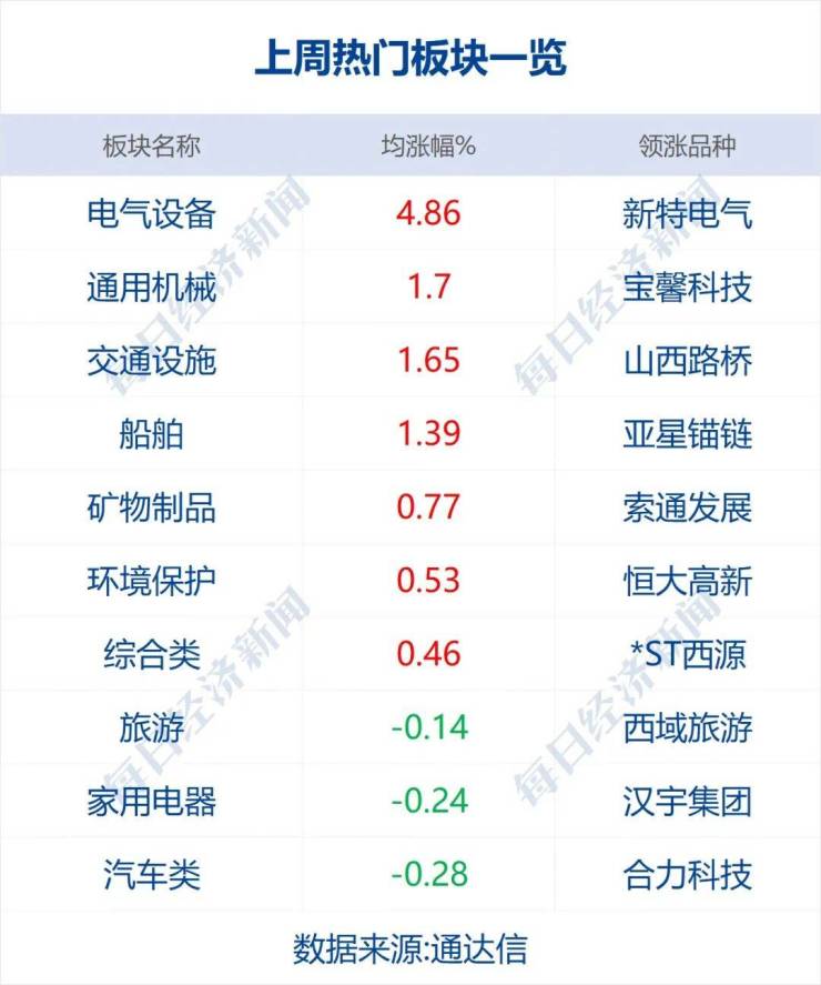 东莞证券总结,上周大盘延续震荡调整,沪指失守3250点。具体来看,上周初指数有所回调,随后走势分化,沪指延续回落,深指和创业板指探底回升,上周五三大指数跌幅明显扩大,最终沪指失守3250点,深指和创业板指在5日均线徘徊。从周K线来看,上证指数下跌3.81%,深证成指下跌3.47%,创业板指下跌2.03%。个股板块呈普跌态势,仅电力设备上涨;非银金融、煤炭、有色金属、房地产、银行等行业走势较弱。资金面,上周北向资金净流出220.40亿元,其中沪市净流出138.00亿元,深市净流出82.4亿元。