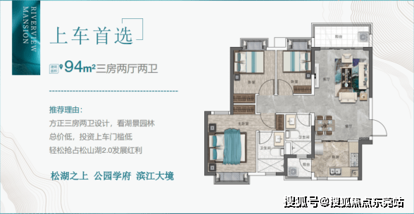 建面约94㎡三房两厅两卫户型,方正竖厅设计,动静分区,居住舒适度高。