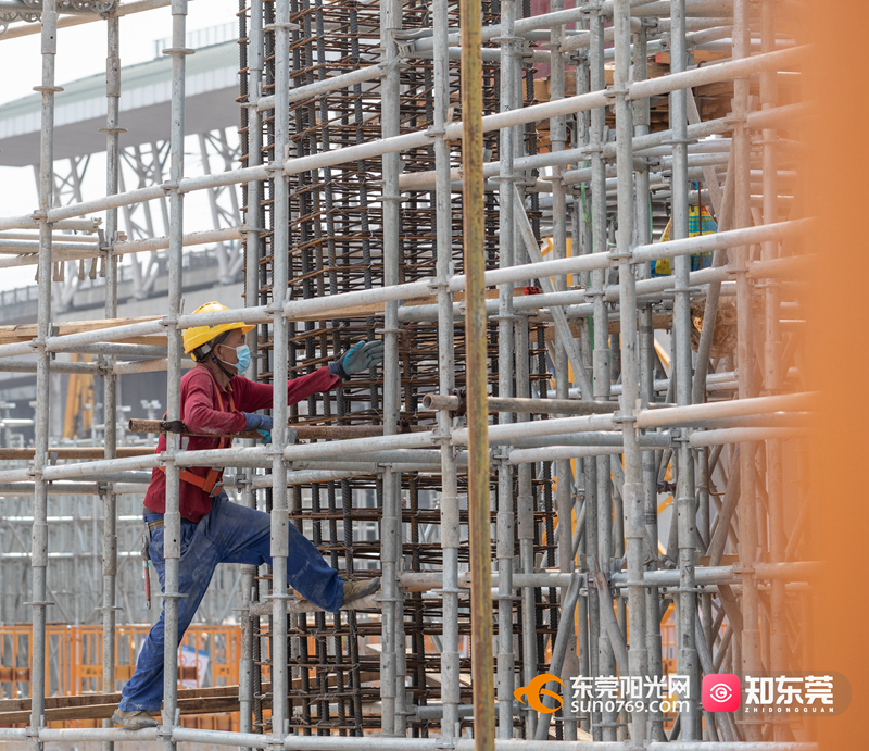 3月21日,记者在虎门站站房改扩建及配建工程的施工现场看到,这里塔吊林立,基坑内有施工人员正在固定支架,为接下来的顶板施工做好准备,整片工地在春日暖阳下呈现出一派热火朝天的施工景象。