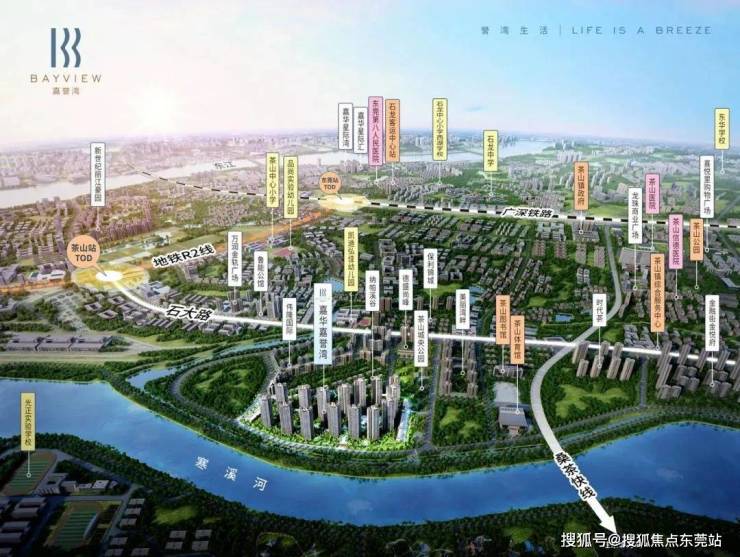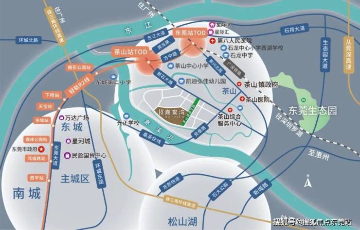 除却上述提到的桑茶快速路,茶山还是东莞最早一批开通地铁的镇街,交通发展排行全市前列。嘉誉湾坐拥东莞地铁R2线茶山站、东莞站两大TOD,无论是前往城区、滨海湾片区抑或是广州、深圳等地,都能极速畅达。