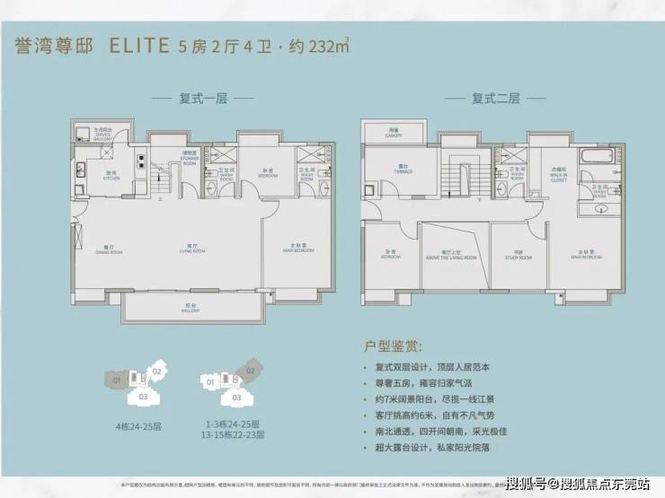 不仅如此,嘉誉湾还有建面约188-232㎡的顶峯瞰江单位。