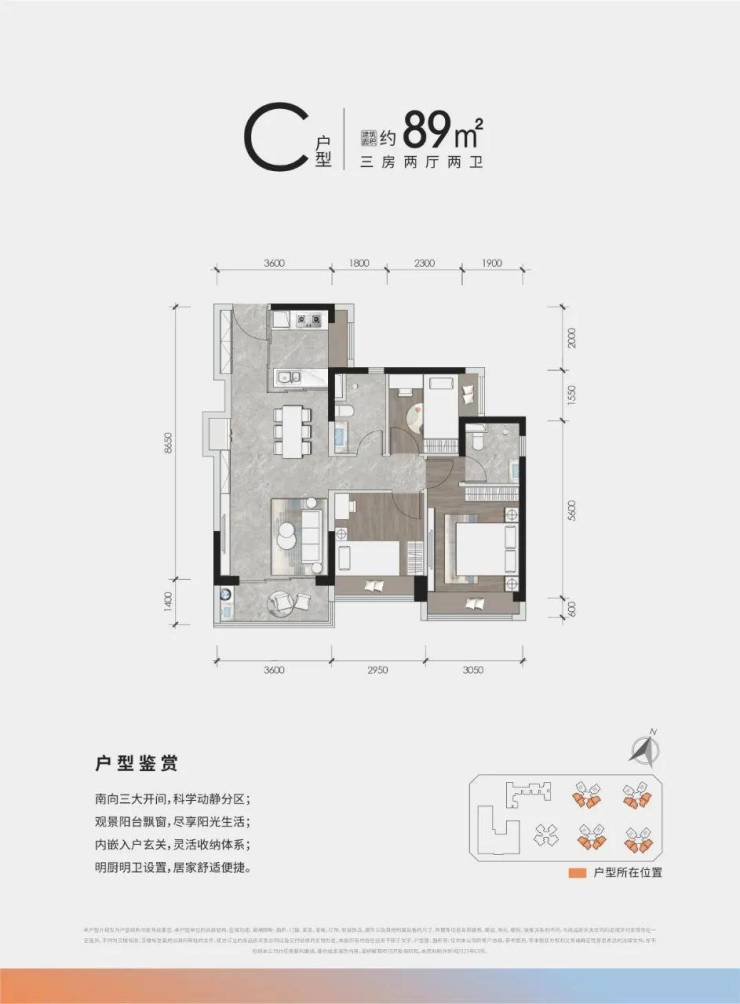 89㎡3房2卫365-436万 单价:4.1-4.8万