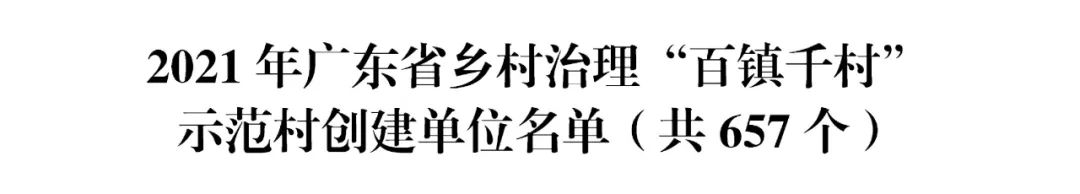 为贯彻落实中央关于推进乡村治理体系与治理能力现代化的决策部署,发挥乡村治理典型示范引领作用,在各地创建推荐的基础上,经复核和公示,省委农办、省农业农村厅、省乡村振兴局、省委组织部、省委宣传部、省委政法委、省民族宗教委、省民政厅、省司法厅共同研究认定广州市白云区太和镇等 71 个镇(乡)为2021 年全省乡村治理示范镇(乡),广州市白云区江高镇鹤岗村等 657 个村为 2021 年全省乡村治理示范村,并将名单予以公布。