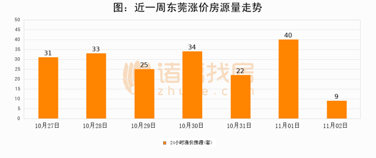 根据诸葛找房数据显示,东莞24小时涨价房源量为9套,较11月01日减少31套,环比下降77.5%。与此同时,涨价房源占比小幅回落,对于购房者来说是一个入市窗口期,购房者可抓住时机入市。