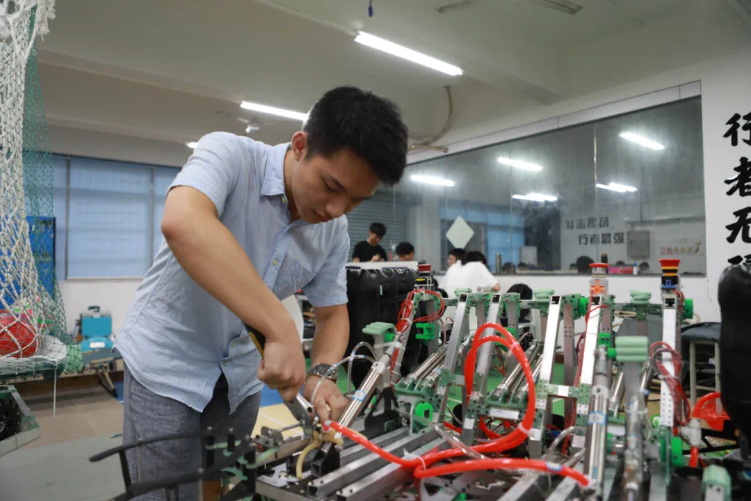 (粤港机器人学院学生制作调试机器人)