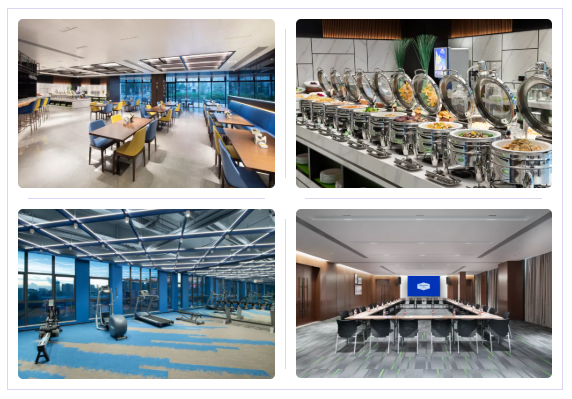 健康格调的欢朋餐厅、乐动健身房,可容纳60人精英会议室和恰到好处的知己服务,使客人享受到高品质的快乐入住体验。