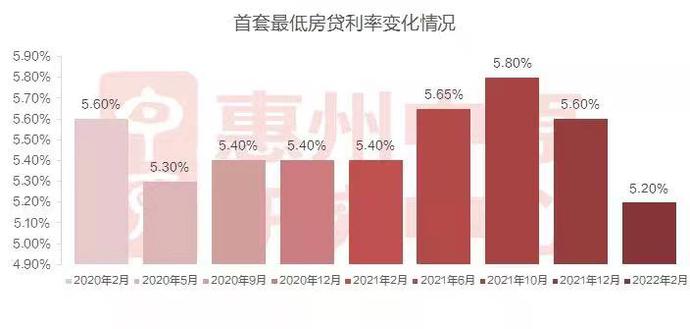 对比2021年10月的惠州新房贷款利率,2月份惠州整体房贷利率普遍下调50个基点,部分银行下调超100个基点较低利率调整至5.2%。对此中原地产结论指出,房贷利率降低落实了信贷端口的放松,对提振购房者信心,有一定作用。