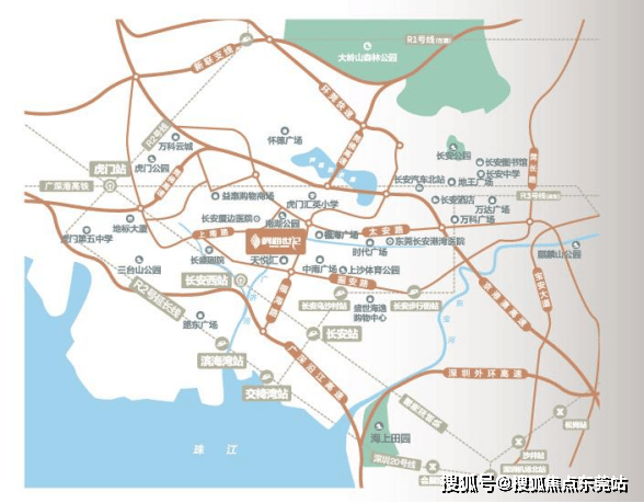 周边广深沿江、广深、莞佛、虎岗、环莞快速、京港澳高速等交通大动脉纵横交错,约10分钟车程可驶入沿江高速,30分钟可达深圳宝安机场。穗莞深城轨“长安西站”距项目仅约2公里,1站抵深圳沙井西站。更令人期待的是,长安规划有四条深莞地铁贯穿,R2延长线将与深圳20号地铁线接驳。