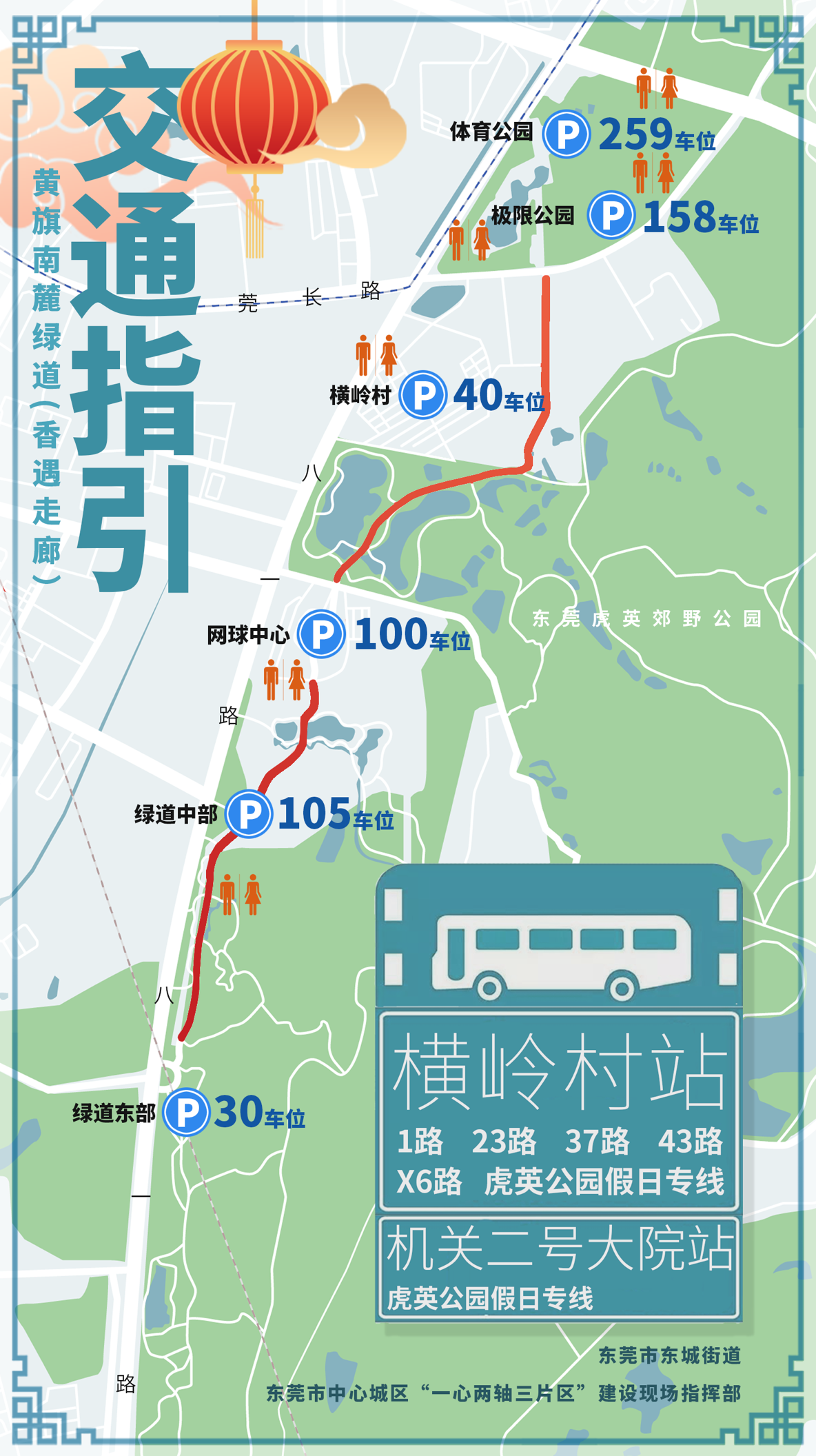 这次贯通的绿道二期工程全长约1.1千米,包含童趣田园段与山水城市段,西至莞长路,东至虎英路,并与已开放的绿道一期(网球中心划线段)隔虎英路相望。绿道二期工程正在打造集儿童游乐、田园风光、山湖自然景观等于一体的景观风貌与游乐设施,建设登山步道、揽香走廊与观景平台等特色设施,还将通过人行天桥跨过市网球中心串联一、二两期绿道,这些设施都将于今年内建成使用。