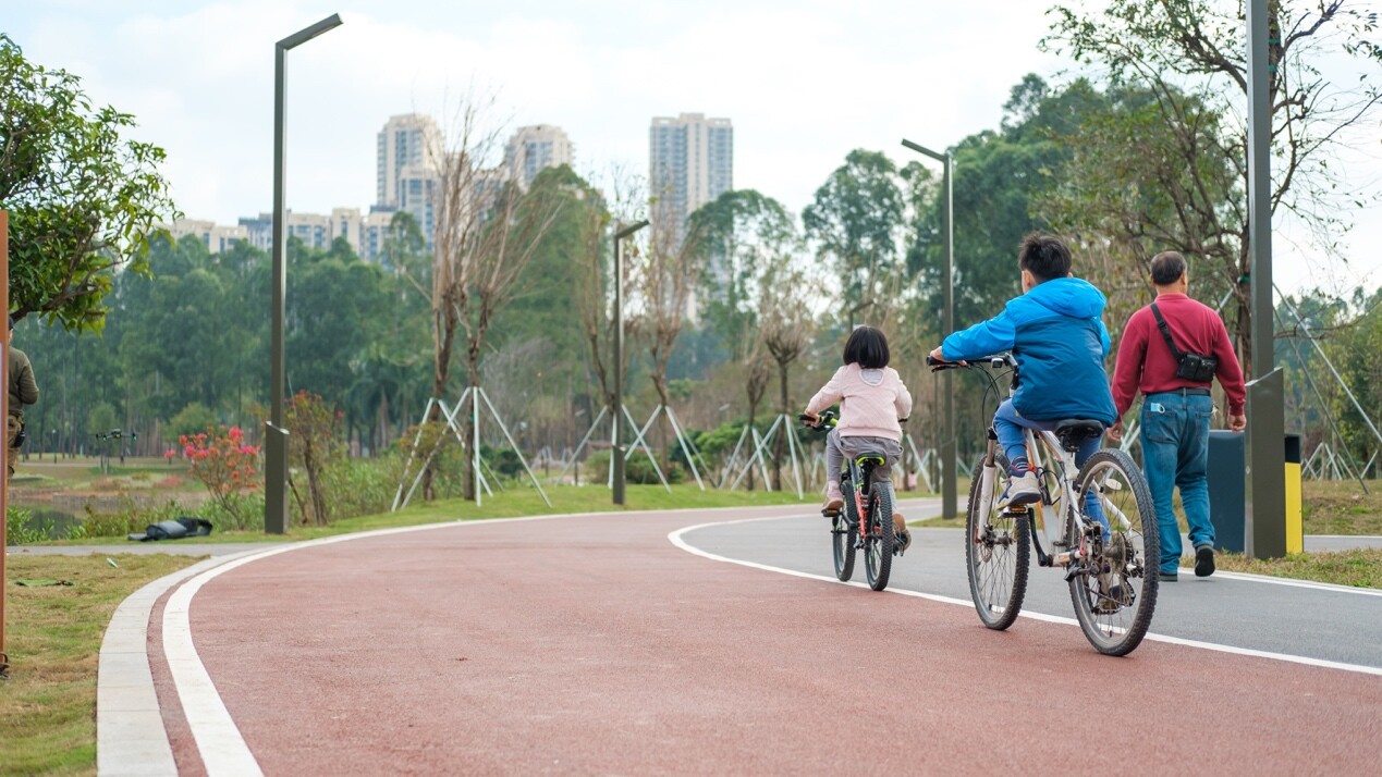 值得一提的是,黄旗南麓文体带绿道也是东莞市内建成的首条儿童友好型绿道:在保障儿童安全的前提下,依据儿童活动范围缩短服务设施的服务半径;为不同年龄段提供探险、自然科普、游玩、戏水等多种活动空间,保障不同年龄段的使用需求。