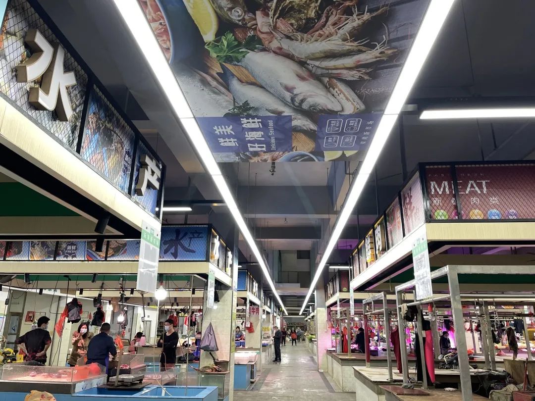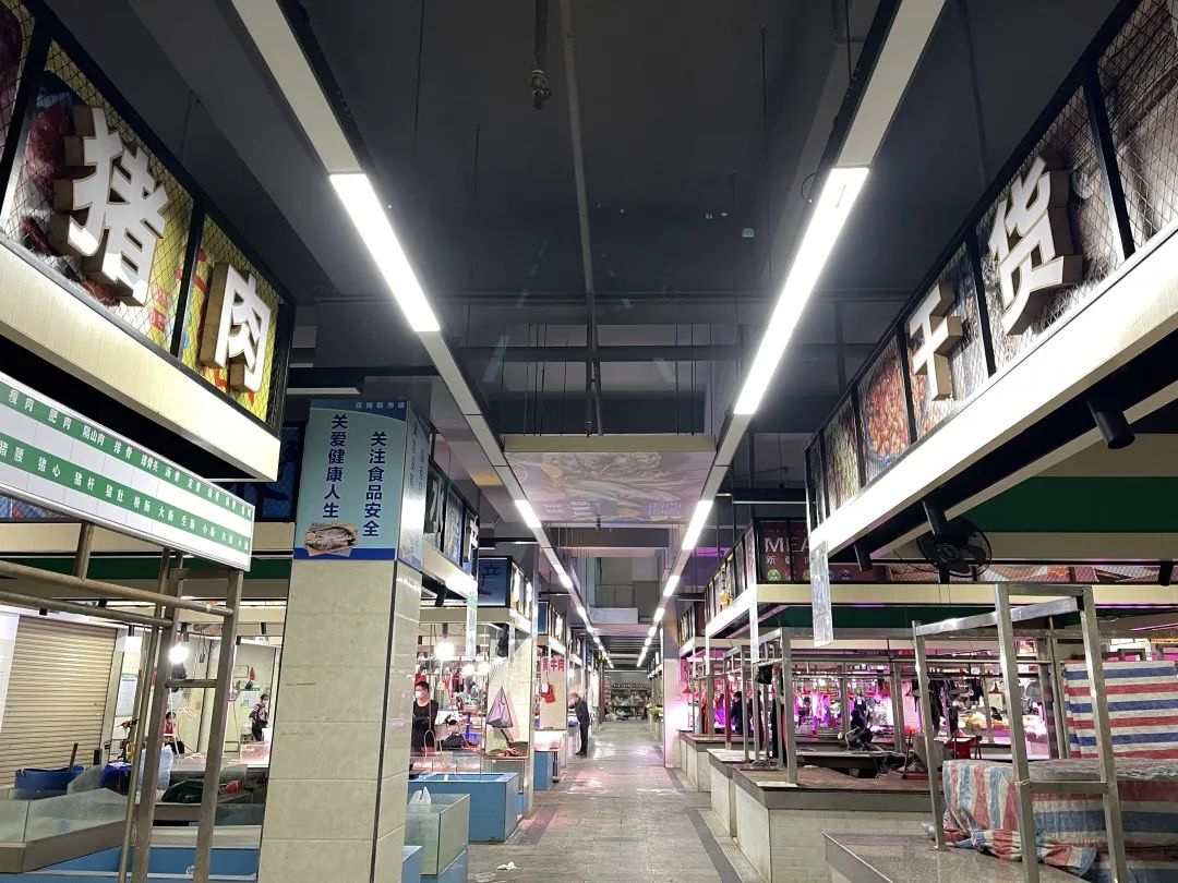据了解, 双岗市场于 2017 年 8 月开办,占地面积4000平方米,建筑面积10000平方米,共 3 层,主要经营各类海鲜、肉类、蔬菜、三鸟、腊味等,场内共有经营户 98 户,目前出租率 70 %。自2017年以来,双岗市场历经3次升级改造,去年更是投资289万元,对市场内的照明设施、排水设施、洗手间等硬件设施进行了升级。