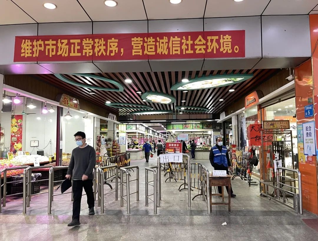 在疫情防控方面,双岗新市场入口除了按要求进行测温、扫码打卡进入外,还加设隔离栏,实行进出分流。市场内部严格落实“1110制度”,每日定时安排专人进行打扫保洁。值得一提的是,应疫情防控需要,生鲜货店铺内均被分为顾客选购区、食材加工区、存货区等共三块区域,有效保障市民购物安全。