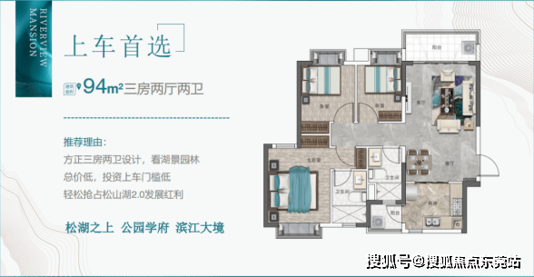 建面约94㎡三房两厅两卫户型,方正竖厅设计,动静分区,居住舒适度高。